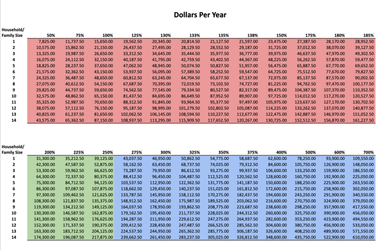This course is for children one to fifteen months old. Class focuses on parent and child interaction with songs and infant play. Parents benefit from a time for discussion on parenting topics or concerns. (non-separating) Please see the table below to determine your eligibility for a reduced rate. This table is based on federal poverty guidelines. Then select the fee amount that works for your family.